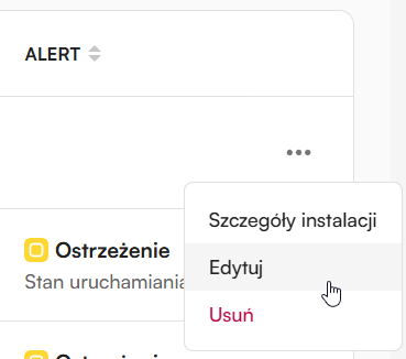 Edycja instalacji jest możliwa poprzez kliknięcie trzech kropek na liście instalacji i wybranie opcji “Edytuj”. Drugą opcją jest wejście w szczegóły instalacji, którą chcesz edytować, a następnie kliknięcie w przycisk “Edytuj” w prawym górnym rogu.