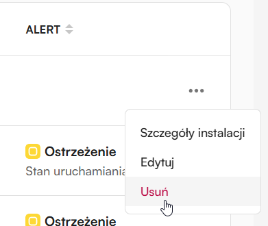 Żeby usunąć instalację, wejdź na listę instalacji i wybierz opcję “Edytuj”. Pojawi się komunikat potwierdzający wykonanie tej akcji.